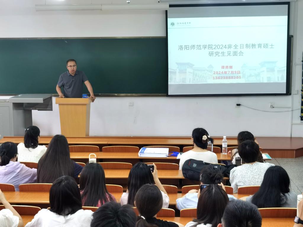 7月10日下午,党委研究生工作部(研究生处)于逸夫楼G1-308教室召开2024级非全日制教育硕士研究生见面会。党委研究生工作部部长谭勇刚、研究生管理办公室主任饶崇渊及2024级全体非全日制研究生参加会议。