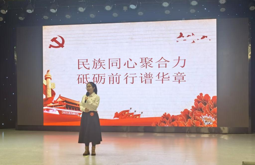 活动开展以来,党委研究生工作部(研究生处)高度重视,广泛动员,层层选拔,学科教学(历史)专业研究生高龙雪经初赛选拔进入决赛。决赛过程中,高龙雪以《民族同心聚合力 砥砺前行谱华章》为主题,讲述了在中华民族漫长发展历程中,各民族相互交融、携手共进的感人故事,表达了对中华民族团结奋进精神的深刻理解。凭借流畅的表达、饱满的热情和深刻的思想感悟,赢得了评委与观众的一致好评,最终荣获三等奖。