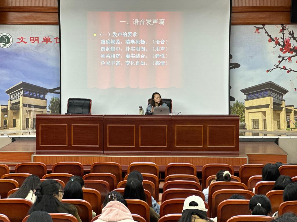 此次讲座内容丰富,讲解生动、实操性强,通过讲座学生们掌握了发声的基本方法、语言表达技巧和态势语言表达方法,为我校教育硕士研究生综合语言表达能力和教学技能的提升提供了有效途径。
