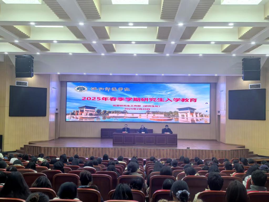 2月20日下午,党委研究生工作部(研究生处)于逸夫教学楼G1-112报告厅召开我校2025年春季学期研究生入学教育大会。党委研究生工作部部长谭勇刚、党委研究生工作部(研究生处)副部长(副处长)朱利阳、研究生管理办公室主任饶崇渊及2024级全体硕士研究生参加会议。