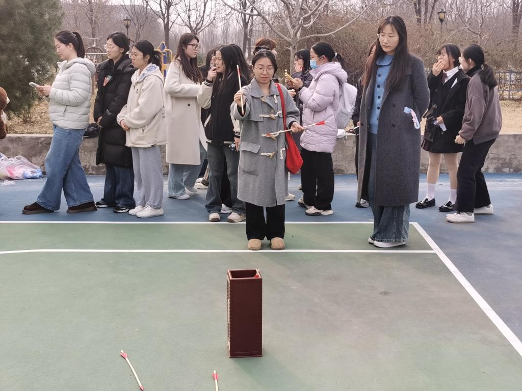 活动内容包括“投壶之礼”“趣味套圈”“一二三看这边”三个项目,参与者按照规则完成挑战即可获得相应礼品。“投壶之礼”融入文化讲解,寓教于乐;“趣味套圈”锻炼了手眼协调能力,圈住了快乐幸运;“一二三看这边”游戏既考验技巧,又激发了团队协作。活动现场洋溢着青春的气息,现场气氛融洽,欢声笑语此起彼伏。