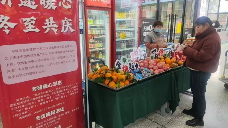 2025年全国硕士研究生招生考试开考在即,考研学子们的复习备考也进入了最后的冲刺阶段。为帮助考研学子缓解压力,坚定信心,12月19日至20日,中心在各餐厅开展考研助力暖心活动。