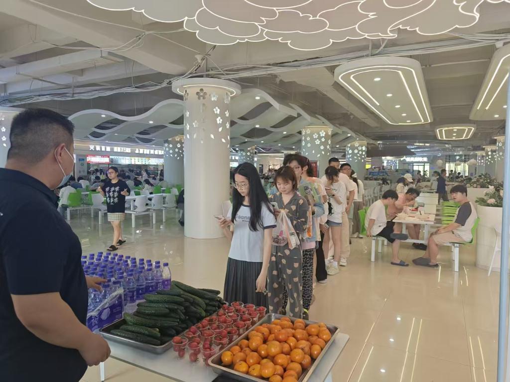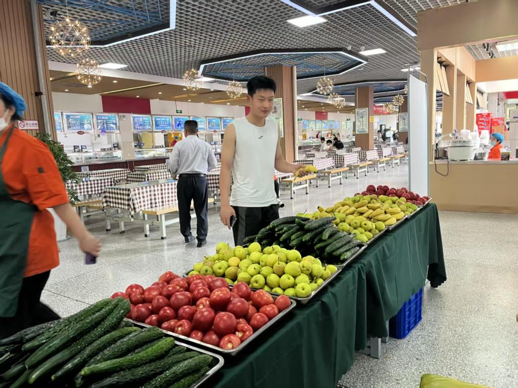 为做好本次活动,饮食服务中心组织各食堂积极准备,提前一周完成方案申报与物资筹备工作。根据安全健康营养的要求,精选了香蕉、黄瓜、圣女果、香梨、橘子、西红柿等多种时令果蔬,准备了瓶装饮用水、各类运动饮料等饮品,免费发放给前来就餐的运动员及广大师生。活动期间累计服务师生2.6万人次,受到师生的广泛好评,师生满意度达98.6%。