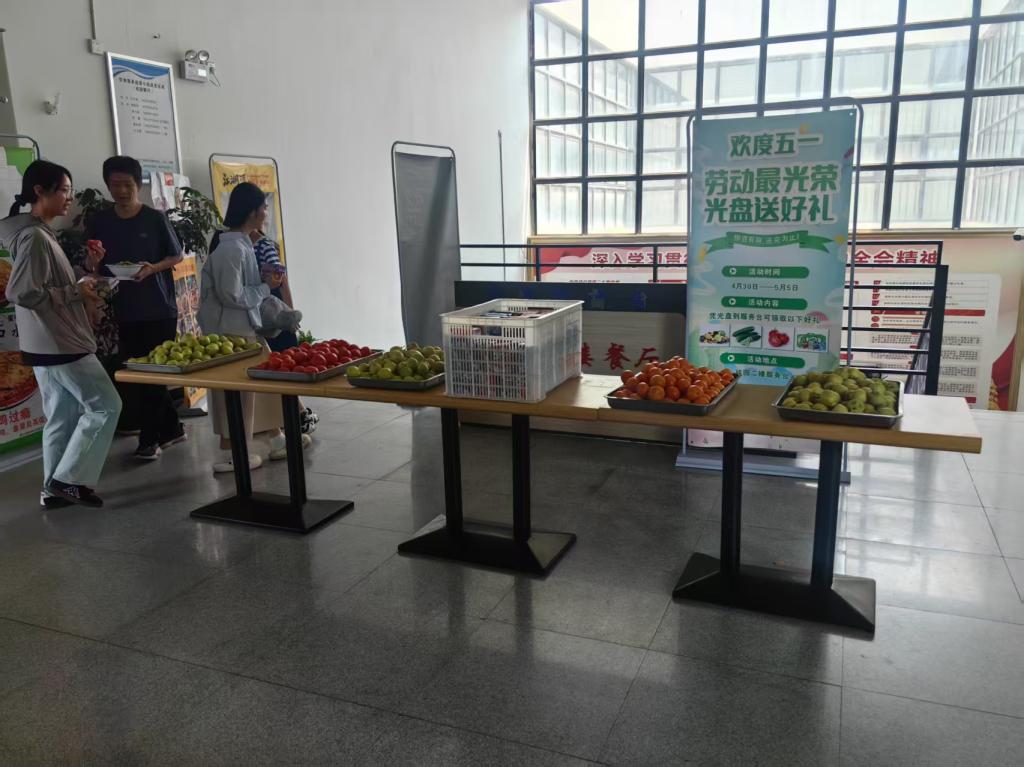 桂园餐厅倡导“光盘行动”,以“劳动最光荣”为主题,为践行光盘的师生送上香梨、橘子、优酸乳等营养补给包。吃饱喝足的同时,还能带走甜蜜心意,让节约理念融入校园日常生活。