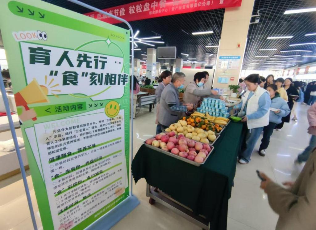 为使同学们切实感受学校大家庭的关怀和温暖,餐厅积极谋划,创新举措,相继开展了“餐后加水果,营养更均衡”“浓浓关爱,深深祝福,同学,请领取你的生日祝福”等系列活动。在日常服务中要求餐厅职工在售饭时要使用礼貌用语、文明用语、微笑服务,用灿烂的微笑、热情的服务、友好的话语给学生传递正能量。学校餐厅还为家庭经济困难的学生提供勤工助学岗位,通过实践教育,培养学生自信、自立与自强的品质。