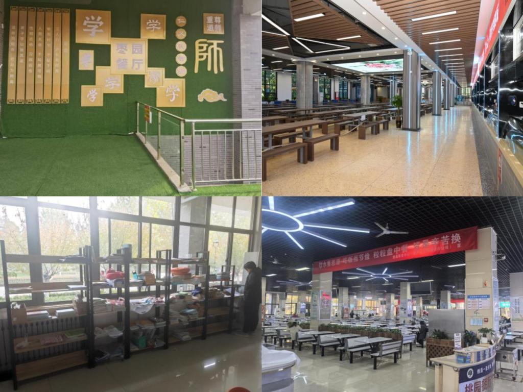 为提升师生舒适温馨的就餐环境,学校引入优质社会餐饮企业,对学生餐厅进行了升级改造。升级后的餐厅以洛师元素为主线,焕然一新、餐厅干净明亮、环境雅致。餐厅还合理规划区域,购置安装书架设置读书角,为学生营造书香为伴的文化氛围,让学生在餐厅也能徜徉于知识的海洋。另外,餐厅把文明节约作为服务育人的一项重要内容,充分利用区域空间,通过电子显示屏滚动播放、宣传栏展示、悬挂条幅等多种宣传形式,让学生切身感受到食物的来之不易,真正形成尊重劳动和勤俭节约的意识。