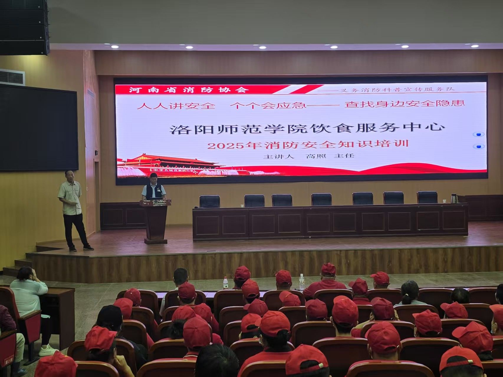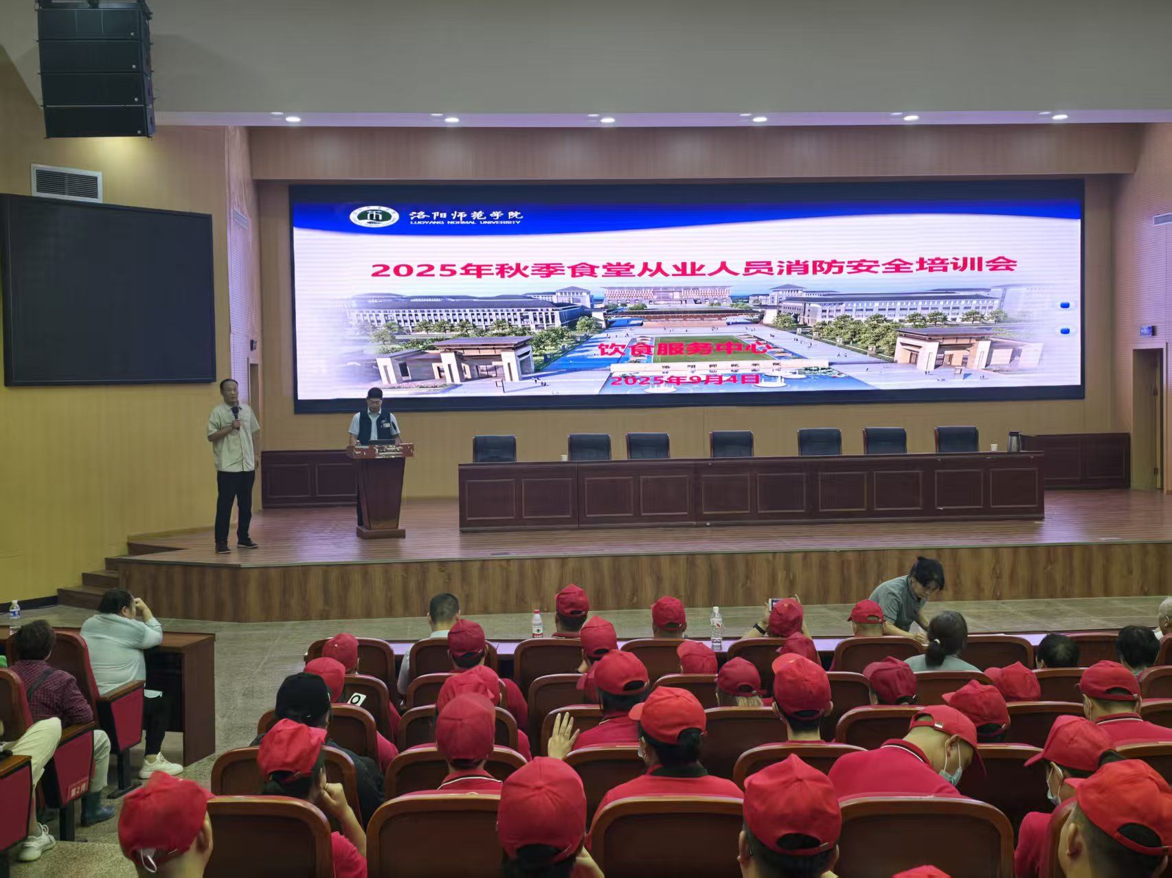 2025年9月4日,饮食服务中心以“人人讲安全 个个会应急——排查身边安全隐患”为主题,邀请河南省消防协会专业资深教员,对食堂300余名从业人员进行了理论知识讲解与消防器材实际操作相结合的培训。