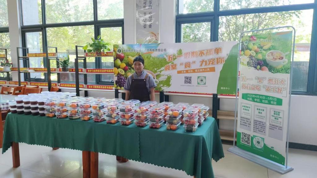 桂园餐厅倡导“光盘行动”,以“劳动最光荣”为主题,为践行光盘的师生送上香梨、橘子、优酸乳等营养补给包。吃饱喝足的同时,还能带走甜蜜心意,让节约理念融入校园日常生活。