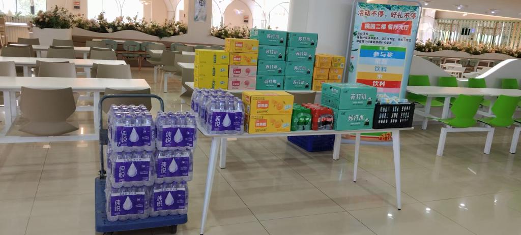 枣园餐厅打造“五一暖心季”,推出“杯镇奇兵”乒乓弹射挑战赛。无论技术高低,均可在欢乐氛围中赢取毛巾、洗发水、香皂等生活实用套装,并伴有幸运奖-随时解渴的矿泉水和优酸乳,让快乐无门槛传递。