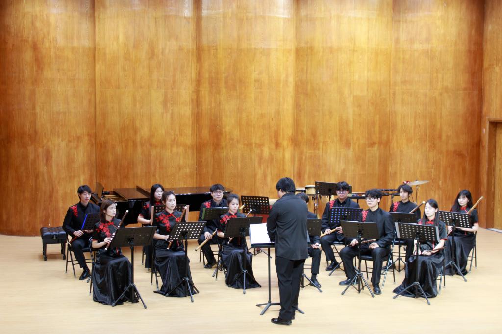 2025年4月25日,洛阳师范学院竹笛乐团在音乐厅成功举办了一场别开生面的音乐会,吸引了部分专家和众多音乐爱好者前来观赏。音乐会由洛阳师范学院音乐学院竹笛教师王博渊发起并担任指导教师,洛阳师范学院青年教师张强担任指挥,为观众带来了一场视觉与听觉的双重盛宴。