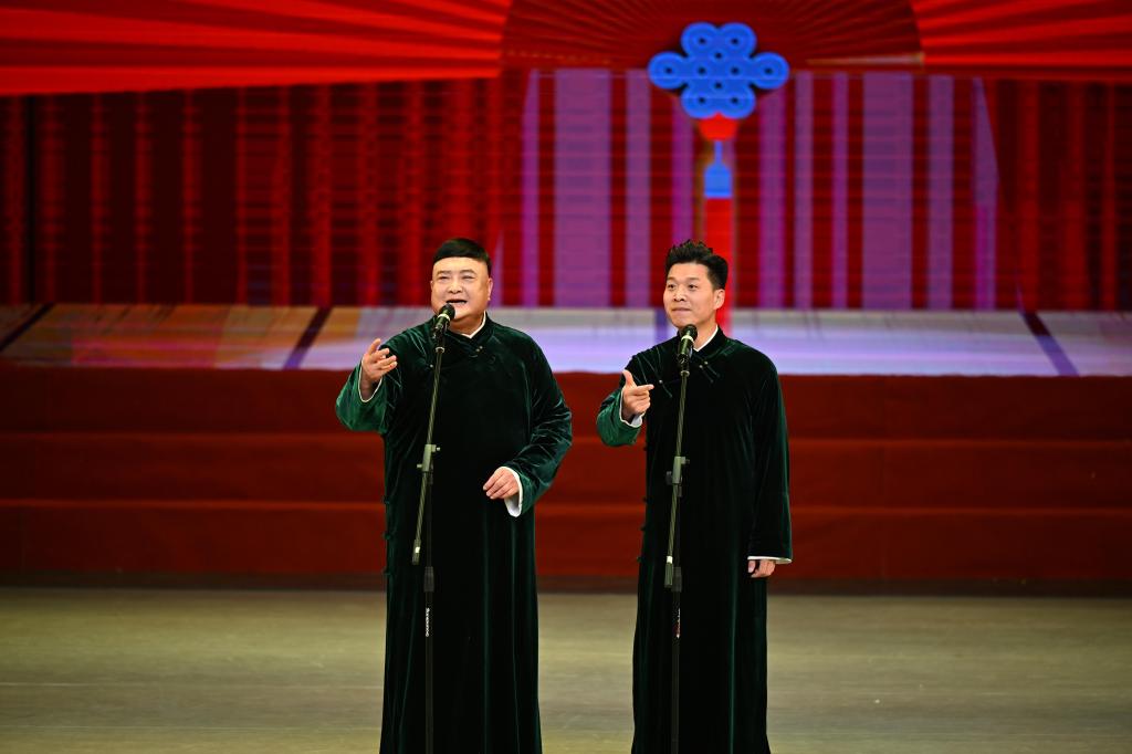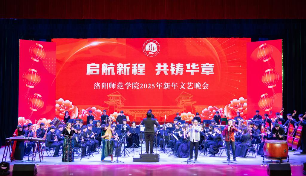 晚会分为“同心筑梦”和“再创辉煌”两个篇章。交响乐《金蛇狂舞》旋律昂扬、热烈奔放,在欢乐祥和的气氛中拉开了晚会序幕;舞蹈《少游太学》寓意着洛师将不断追求卓越,为社会培养出更多栋梁之才;朗诵《不忘初心,再续华章》回顾了一年来学校发展足迹,展示了办学治校取得的优异成果,进一步凝聚师生昂首阔步奋进2025年的信心和力量;合唱《逐梦》鼓励每一个洛师人勇于逐梦,向着更加宏伟的目标勇敢前行;著名表演艺术家范军和弟子明男男带来的相声《欢乐有豫》幽默风趣、妙趣横生,台下笑声此起彼伏,掌声接连不断;豫剧《双英豫韵》通过美轮美奂的演出,彰显了传统戏剧文化的时代魅力;舞蹈《清风徐来》以其优美的舞姿,让人感受到春天的气息和生命的韵律;河洛大鼓《大河故事》节奏明快、韵律十足,展现着中华优秀传统文化在新时代发扬传承;武术《武韵华章》一众少年虎步生风,大展身手,展现了中华武术的独特魅力,赢得台下阵阵喝彩;晚会在歌伴舞《母亲是中华》的热烈氛围中落下帷幕。