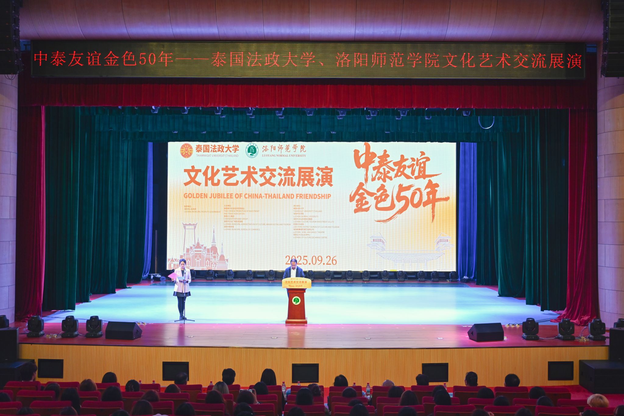 为纪念中泰建交50周年,深化两国人文交流与教育合作,9月26日,洛阳师范学院与泰国法政大学联合举办中泰友谊金色50年文化艺术交流展演在音乐学院大剧院举行。