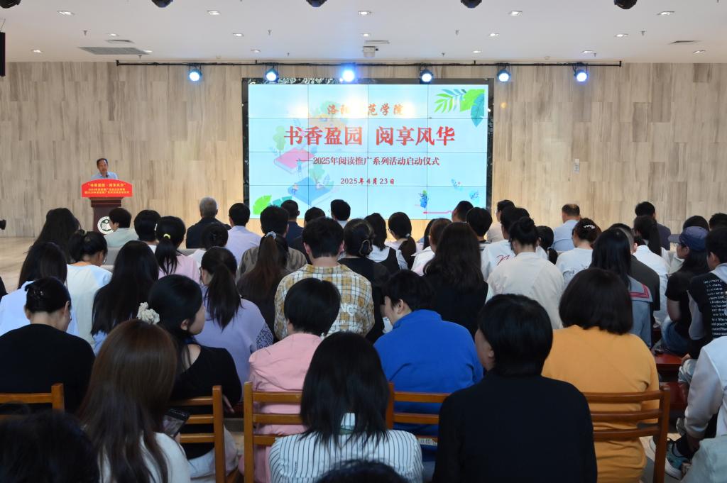 赵邦屯在讲话中强调,阅读是大学生成长成才的重要基石。他就深化阅读推广工作提出三点要求:一是完善阵地建设,打造线上线下一体化阅读空间,推动数字资源与实体服务的深度融合;二是提升阅读素养,通过个性化阅读指导、深度阅读、树立标杆榜样等方式,培养学生辩证思维和文化传承能力;三是推进部门协同,构建各职能部门、学院书院间的联动机制,形成全员、全方位、全过程的阅读育人格局,共同书写属于洛师人的文化传承新篇章。