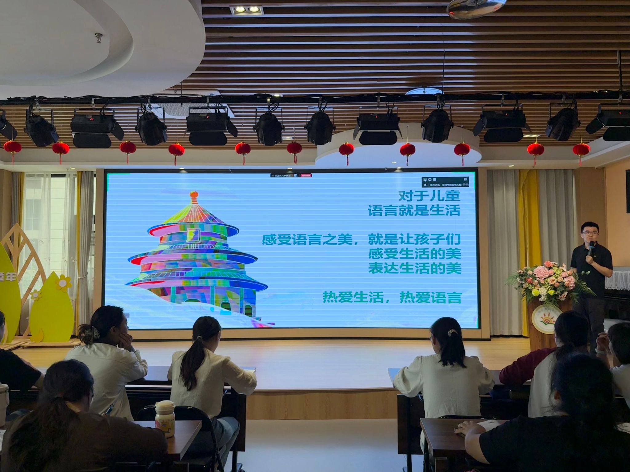 第28届全国推广普通话宣传周期间,国家语言文字推广基地(洛阳师范学院)主办的“推普惠周边”活动在洛阳市实验幼儿园(绿都园区)成功举行,省级普通话水平测试员、校学前教育专业教师龚贺带来了主题为《童语同音,美润童心》的幼儿教师语言素养提升活动,实验幼儿园近40名一线老师参加本次活动。