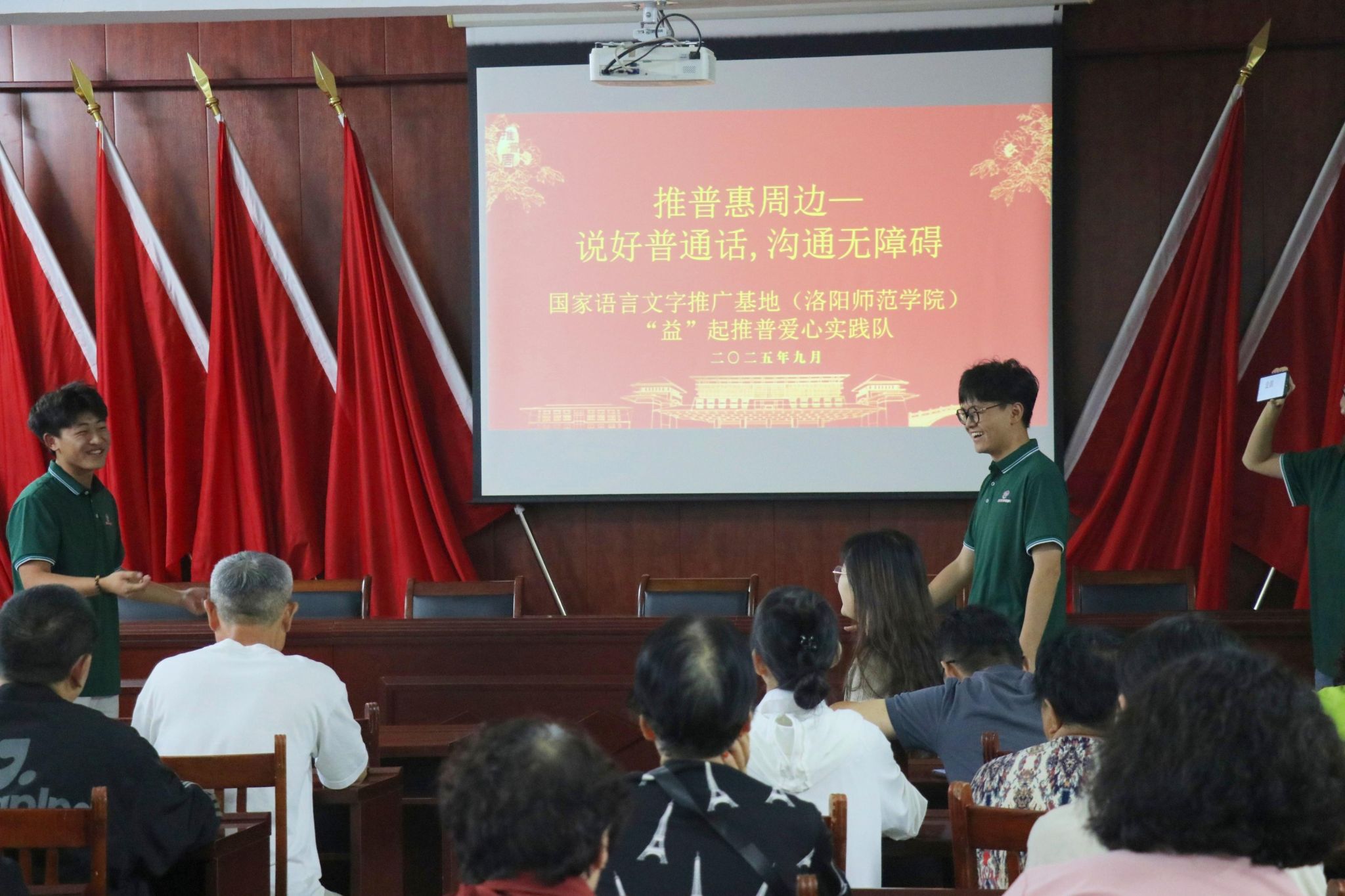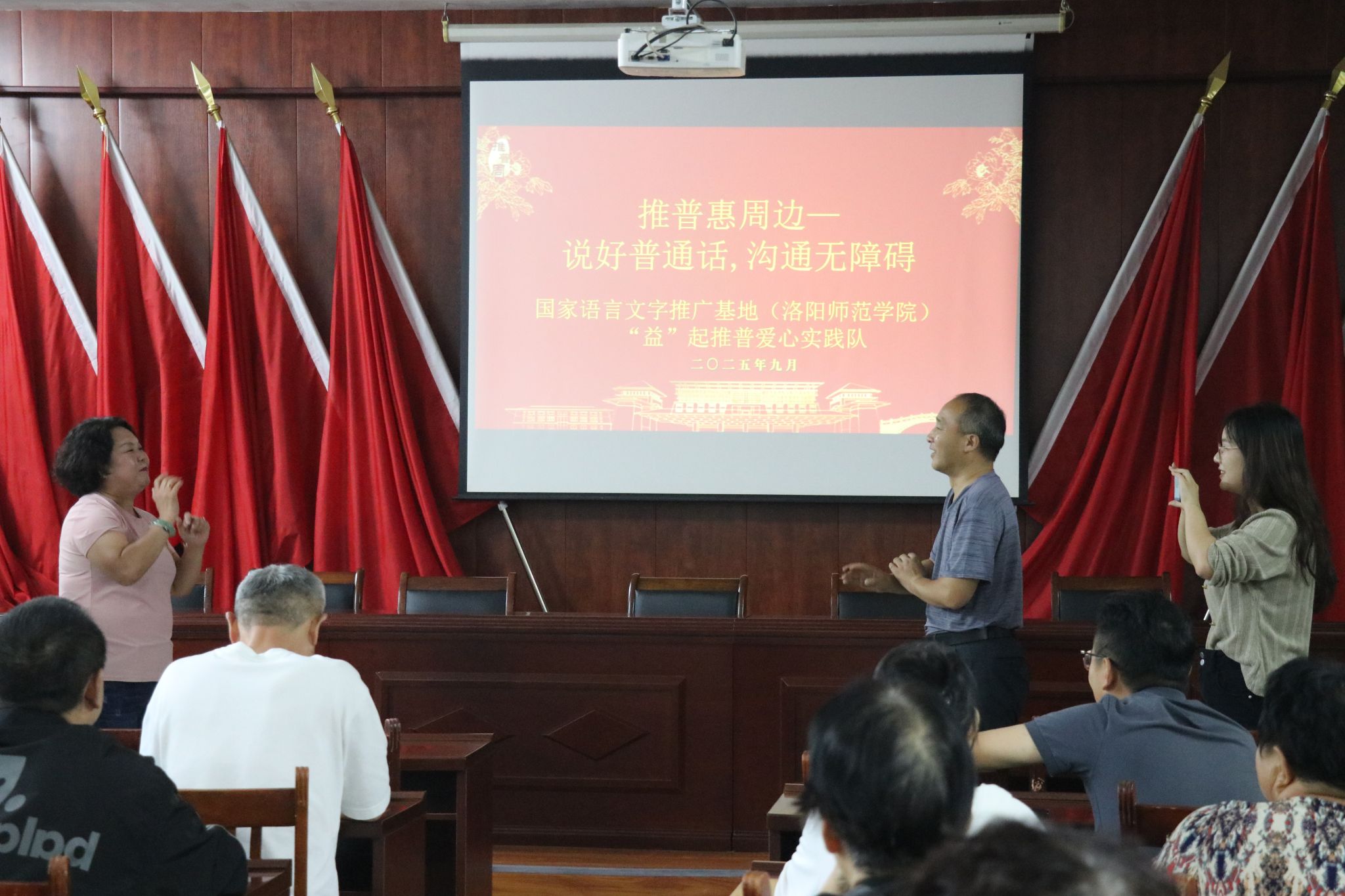 第28届全国推广普通话宣传周期间,国家语言文字推广基地(洛阳师范学院)联合新闻与传播学院“益”起推普爱心实践队,赴老城区岳村社区开展“推普惠周边”活动,以“说好普通话,沟通无障碍”为主题,助力中老年居民理解推普政策、提升普通话应用能力。