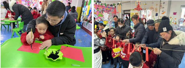 为了让孩子们更好地了解元旦,体验欢庆节日的新年气氛,感受成长的快乐,香莲乡中心幼儿园开展以“喜迎龙年,乐享元旦”为主题的庆元旦活动。活动中,家长握住孩子的手共同写下了新年“福”并且成功猜出来全部的灯谜。