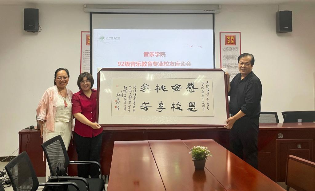 一朝沐杏雨,一生念师恩。每位校友都谈到了对母校的深情厚谊,以及自己成长的历程。校友代表向学院赠送了一块“感恩母校,桃李芬芳”的书法作品。大家都认为自己今日的成就与母校的培育密不可分,自己也一定会铭记学校“敬业奉献 为人师表”的校训,努力为洛阳师范学院的发展贡献自己的力量。