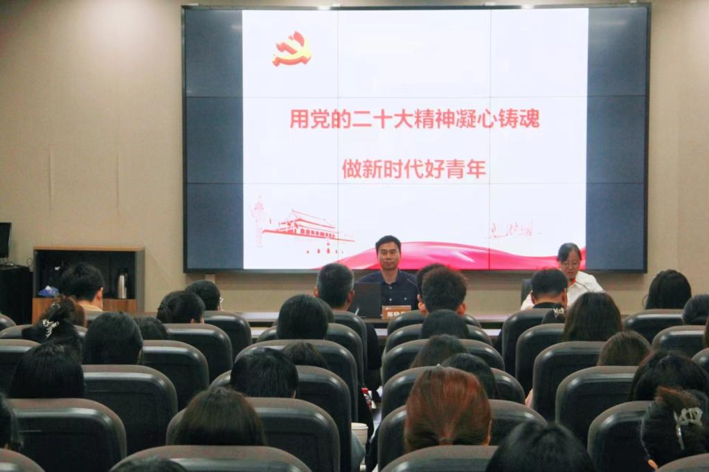 4月22日晚,我院联合美术与艺术设计学院在美术学院A111学术报告厅举行2024年上半年入党积极分子、预备党员培训班。校党委学生工作部部长、学生处处长、鸿都书院二号院党委书记郎晓林应邀为全体学员作“用党的二十大精神凝心铸魂,做新时代好青年”的主题党课。党课由院党委副书记池琳琳主持。