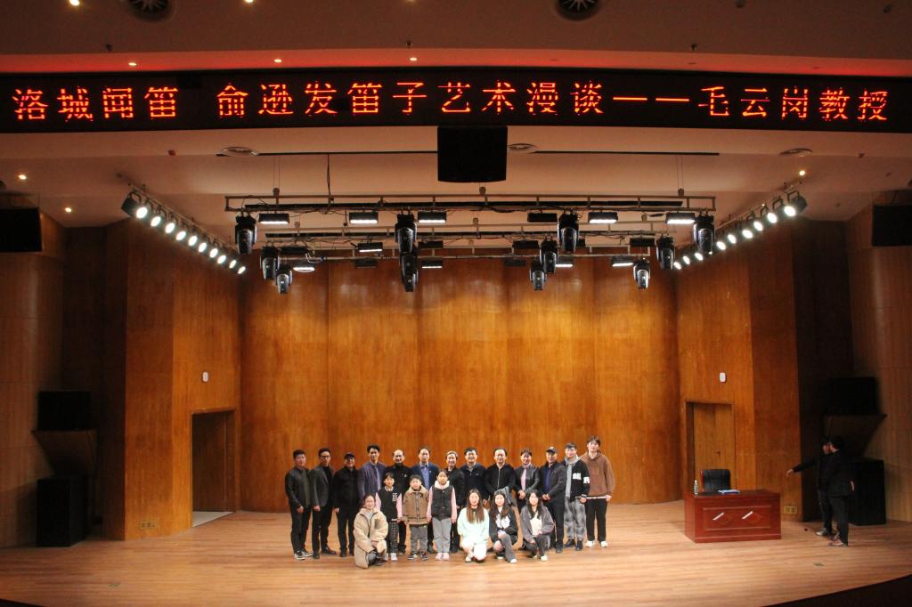 谁家玉笛暗飞声,散入春风满洛城。2023年4月4日晚,我院特邀湖州师范学院音乐学院毛云岗教授在我院音乐厅举办“俞逊发笛子艺术漫谈”学术讲座,本次讲座是我院国家级一流本科专业(音乐表演)建设点系列讲座之一。