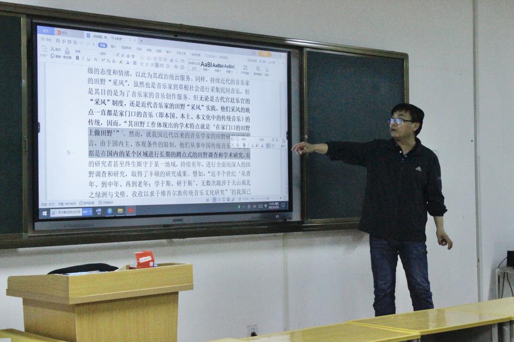 为营造学院学术氛围,提升科研能力,5月25日下午,副院长王建朝教授为我院师生作了一场题为《再论我国民族音乐学家的“守土职责”》的学术讲座,讲座由音乐学系主任常丽梅副教授主持,学院部分师生参与聆听。本次讲座是音乐学系学术讲座之一,也是我院国家级一流本科专业(音乐表演)建设点系列学术活动之一。