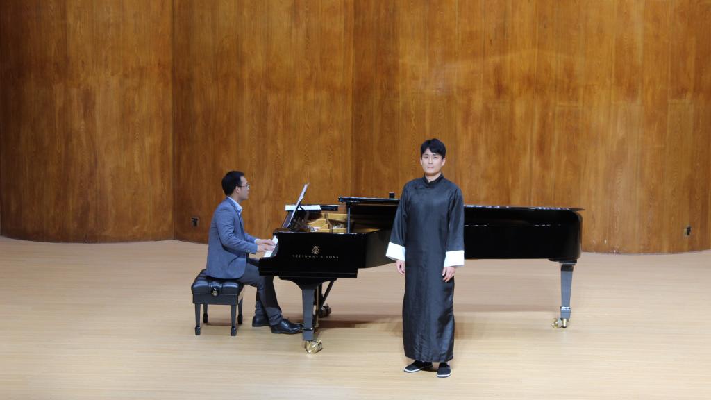 聂文超老师演唱的《偷撒一滴泪 多尼采蒂》婉转动听,温柔如淡淡泉水,余音绕梁。马阳辰老师演唱的《九儿》真假音混合顶上高音,强共鸣、长气息,将儿女情长、国仇家恨淋漓尽致得宣泄出来。刘宁老师演唱的《燕子》是一首新疆哈萨克民歌,优美的旋律、丰满的和声,倏然间深深抓住了现场观众的心。韩冰老师的《敕勒歌》用高超的演唱技巧勾勒出了北国草原壮丽富饶的风光,境界开阔,音调雄壮。王海光老师的《爱永在》虽然平易朴素,其中包含的诗情画意,却直击人心,给听众留下了无限遐想的空间。贾旭阳老师演唱的《大江东去》刚柔并济,歌唱时充分利用共鸣在力度与音色上作出调整,对前后不同的情绪色彩作出强烈的对比。