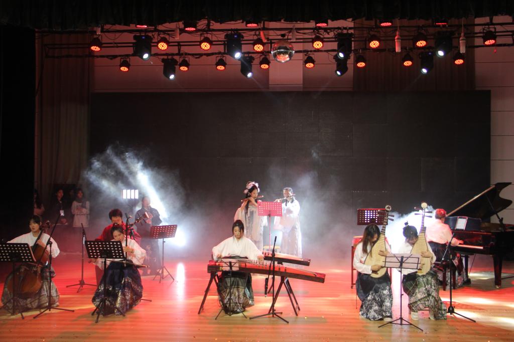 本场演出精彩纷呈,以舞蹈串烧《海芋恋+护花使者+파이팅 해야지》拉开了本次实践演出的序幕。器乐合奏《神话》+《生生世世爱》把民族乐器和西洋乐器融合在一起,用精湛的演奏技巧将全场气氛推向高潮。四重唱《鹿be free》一首流行动画电影歌曲以美声的唱法表现出来,以新颖的方式让观众梦回童年。《庆功酒》一首Rap再次点燃全场的呐喊。歌剧选段《绣红旗》以婉转悠扬的旋律线条娓娓道来,体现出主人公柔情与坚韧的交替,将欣赏者缓缓引入剧情。器乐合奏民族《青玉案·元夕》+《权御天下》以活泼跳动的旋律表现出了民族乐器的魅力,最终以音乐学(中外合作办学)班全体同学的合唱《我是如此相信》结束,此次的实践演出正式拉下帷幕。