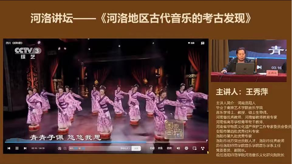 王秀萍教授以河洛地区、古代音乐、考古发现等相关概念的界定作为切入点,从河洛地区古代音乐考古工作的开展情况、出土音乐文物的种类、二里头等几处重要遗址的音乐考古以及河洛地区古代音乐考古成果在当代社会音乐生活中的应用等几个方面详细阐述了河洛地区古代音乐考古所取得的丰硕成果,让观众在接受音乐考古知识熏陶的同时,也了解到河洛地区在古代音乐领域所取得的辉煌成就和发展水平,进一步增强了他们对河洛音乐文化的了解和热爱。