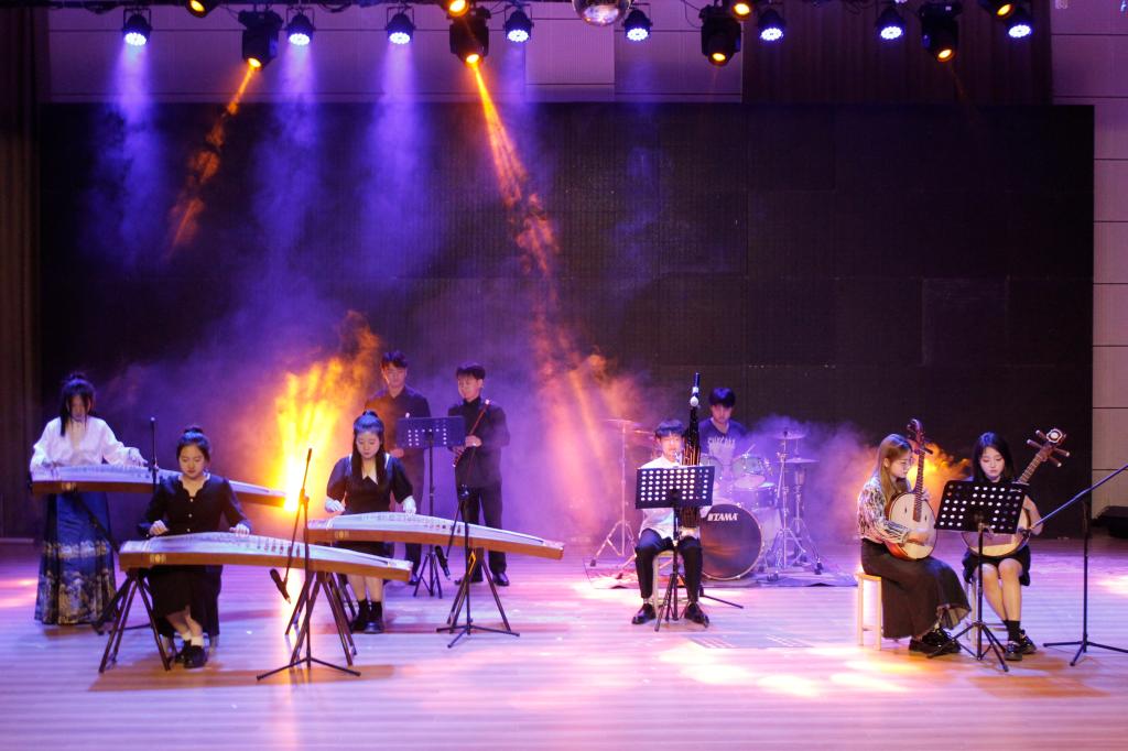 本场实践演出可谓精彩绝伦、异彩纷呈。率先开场的是乐队呈现的表演《火车日记》,潇洒不羁的萨克斯与热烈奔放的鼓声相互交织,伴随着电吉他的撩动,须臾之间便点燃了全场的气氛。一曲《清平乐·红笺小字》借由浑厚悠远的男声将听众引入古香古色的意境之中。民乐合奏《天下》令人惊叹不已,中国乐器与现代编曲碰撞出独具一格的火花,其中说唱元素的融入更是为该节目增色不少。朗诵节目《廉洁颂》高举反腐倡廉的旗帜,红色主旋律流入在场每个人的心间,颂出了一幅一心为公、廉洁奉公且充满力量的画卷,将本场演出的内涵提升了一个新的高度。紧接而来的灯光秀为观众们缔造了一场特殊的视觉盛宴。整场演出在大合唱《我们的明天》中完美谢幕。