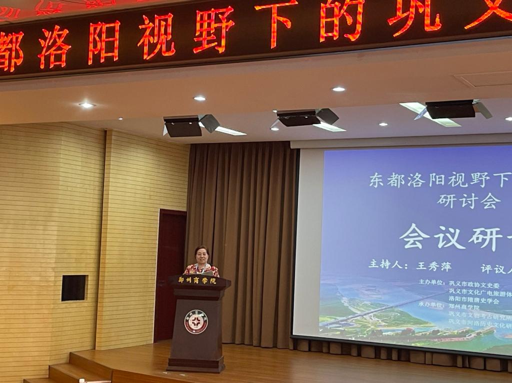 4月27日至28日,由洛阳市隋唐史学会和巩义市政协文史委、巩义市文化广电旅游体育局主办,郑州商学院、巩义市文物考古研究所、巩义市河洛历史文化研究中心承办的“东都洛阳视野下的巩义”学术研讨会在巩义举行,我院王秀萍教授在研讨会上宣讲论文,并主持了下半场的会议研讨。