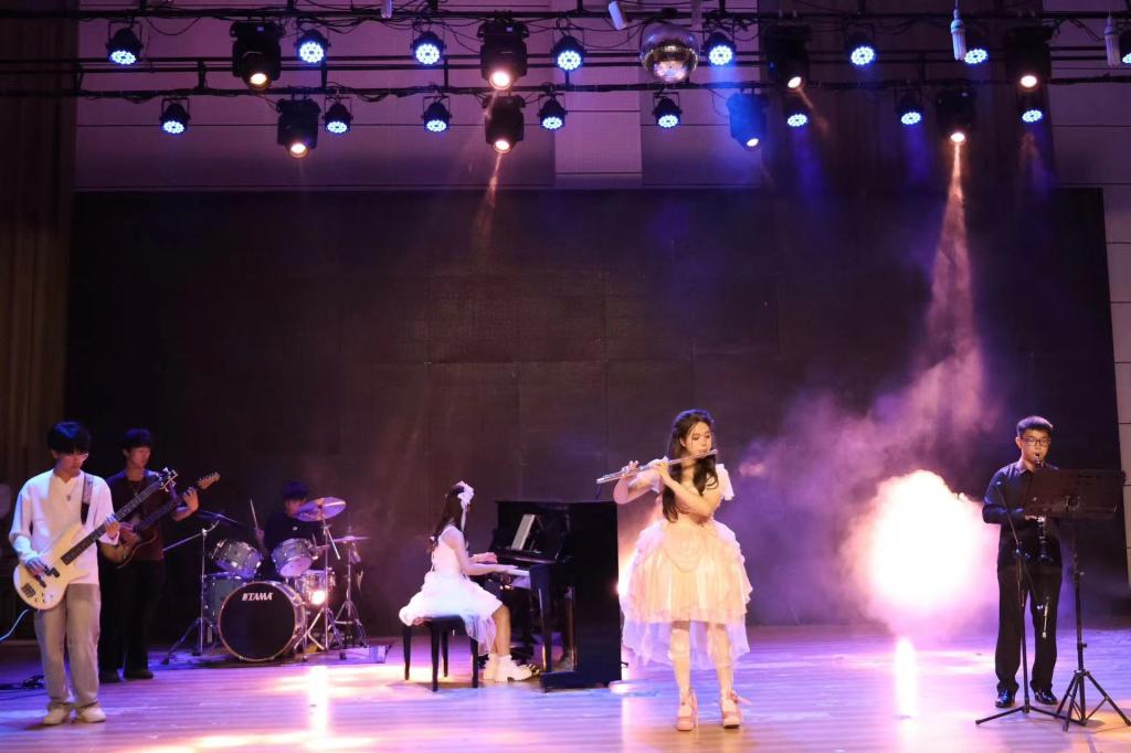本次实践演出之“新”,在于原创作品不断涌现。其中,原创歌曲《时间的加冕》与《第二人称》极具代表性。《第二人称》巧妙融入唢呐元素,将民族乐器与流行乐队相结合,展现了中国传统民族乐器与新时代流行音乐的融合与创新。热烈奔放的民乐合奏《金蛇狂舞》将欢腾气氛与文化特色展现得淋漓尽致,充分反映出学生们积极向上的精神风貌。演奏者们将这一大型乐曲以小规模编排呈现,集中展现了他们卓越的演奏能力和编排水平。长笛单簧管二重奏《告白之夜》,悠扬的长笛与低沉的单簧管完美融合,演奏者别出心裁地辅以流行乐队进行演绎,成功突破了人们对西洋古典乐器的刻板印象。《星空叙爱曲》创新地将男声说唱与女声 vocal 相结合,开头融入剧情演绎,形式新奇独特,尽显我院学子的青春活力。