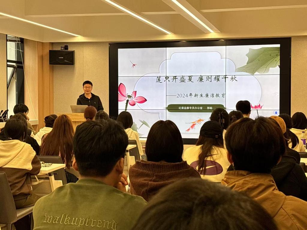 为进一步加强大学生廉洁教育,培养大学生廉洁自律意识,10月17日下午,我院特邀校纪委监察专员办公室第一纪检监察办公室副主任郭聪在开阳书院1号学生社区二楼青年讲堂为2024级新生开展了一场廉洁教育主题讲座。