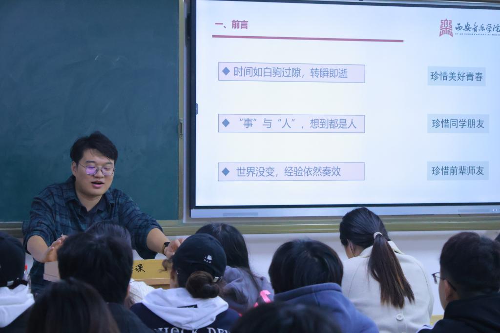 为进一步提高学生就业竞争力,帮助备考研究生同学指明努力方向,音乐学院联合开阳书院一号学生社区举办的启梦大讲堂系列讲座于10⽉31日下午在音乐学院A103教室开讲,本次启梦大讲堂的主题为“我的考研与读研”。由我院优秀毕业生、现西安音乐学院青年教师陈伟岸主讲 。