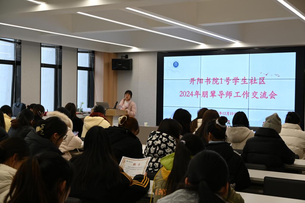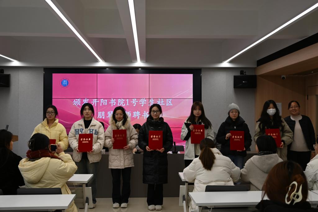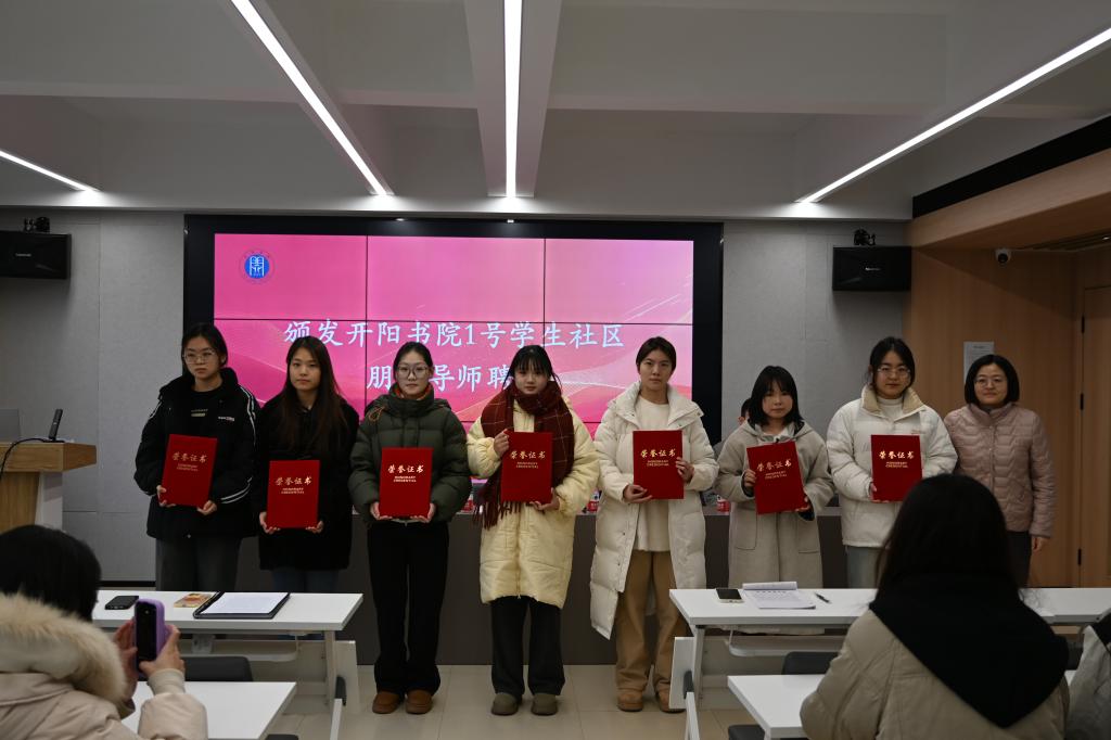 为充分发挥高年级优秀学生的榜样示范作用,打造良好学习与互助环境,12 月19日下午,开阳书院1号学生社区在青年讲堂举办朋辈导师聘任仪式暨工作交流会。书院党委副书记池琳琳、刘杰、全体育人导师及全体朋辈导师共同参与此次活动。