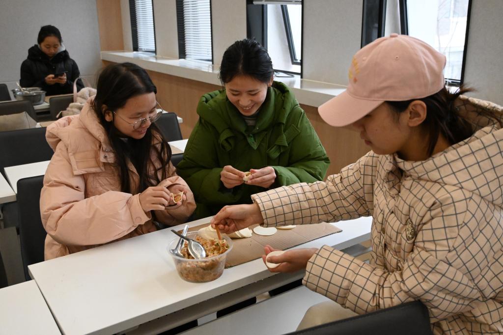 现场活动热闹非凡,同学们围在一起,热情满满地忙碌着,在生活导师、育人导师的帮助下,每个环节都一丝不苟。看着自己亲手包的饺子逐渐成形,同学们脸上洋溢着满满的成就感。随着一盘盘饺子下锅,室内开始弥漫着诱人的香气。同学们迫不及待地排起长队,等待品尝自己的劳动成果。当大家围坐在一起品尝饺子的那一刻,浓浓的节日氛围驱散了冬日的寒冷,每个人心中都充满了温暖与幸福。