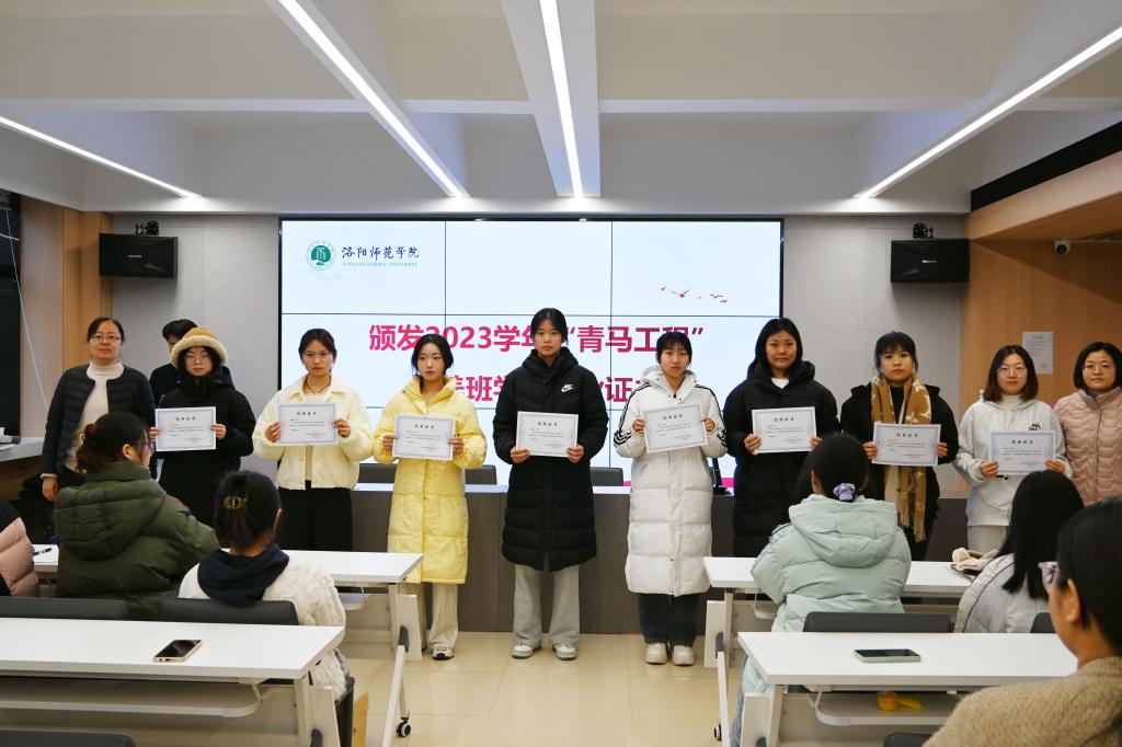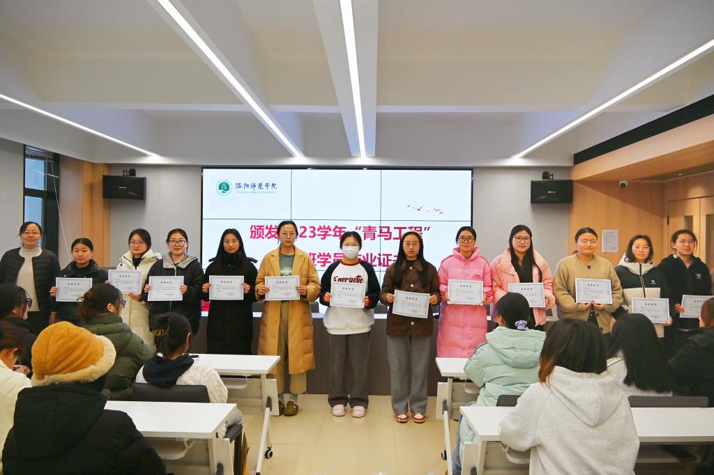 仪式在庄严的国歌声中拉开序幕。书院党委副书记池琳琳宣读《2023-2024学年“青马工程”培训班结业暨第一期“青马工程”培训班开班的决定》。与会领导为2023-2024学年优秀学员颁发结业证书。