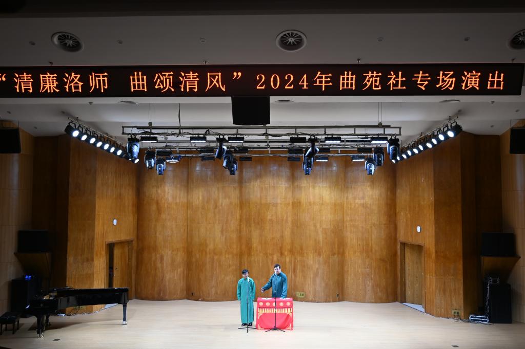 为深化廉政教育,弘扬清风正气,创新廉洁教育新手段新载体,12月26日下午,我院在音乐厅举办“清廉洛师 曲颂清风”2024年曲苑社专场演出,校纪委书记、监察专员练忠杰,各基层党委书记、纪委书记,校纪委监察专员办公室、党委巡察办全体同志、校团委有关负责同志以及师生代表共同观看演出。