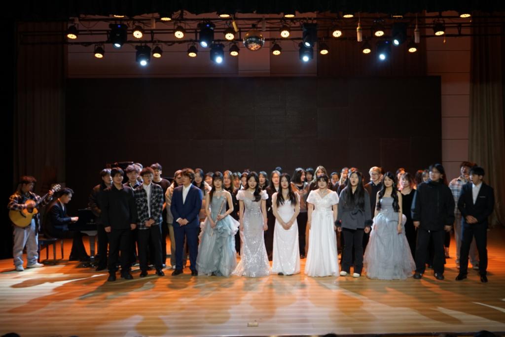 充满活力的舞蹈《第一天》点燃全场,展现了青春的无限活力;用民族乐器演奏的歌曲《霓虹甜心》体现了同学们的尝试与创新;钢琴和小提琴合奏的《舒伯特小夜曲》蕴含深情与温柔,唤起观众内心深处的情感共鸣。最后,演出在全体大合唱《朋友》中完美落幕,2022级音乐表演三班的同学们用优美的歌声向观众们传递友好和热情。