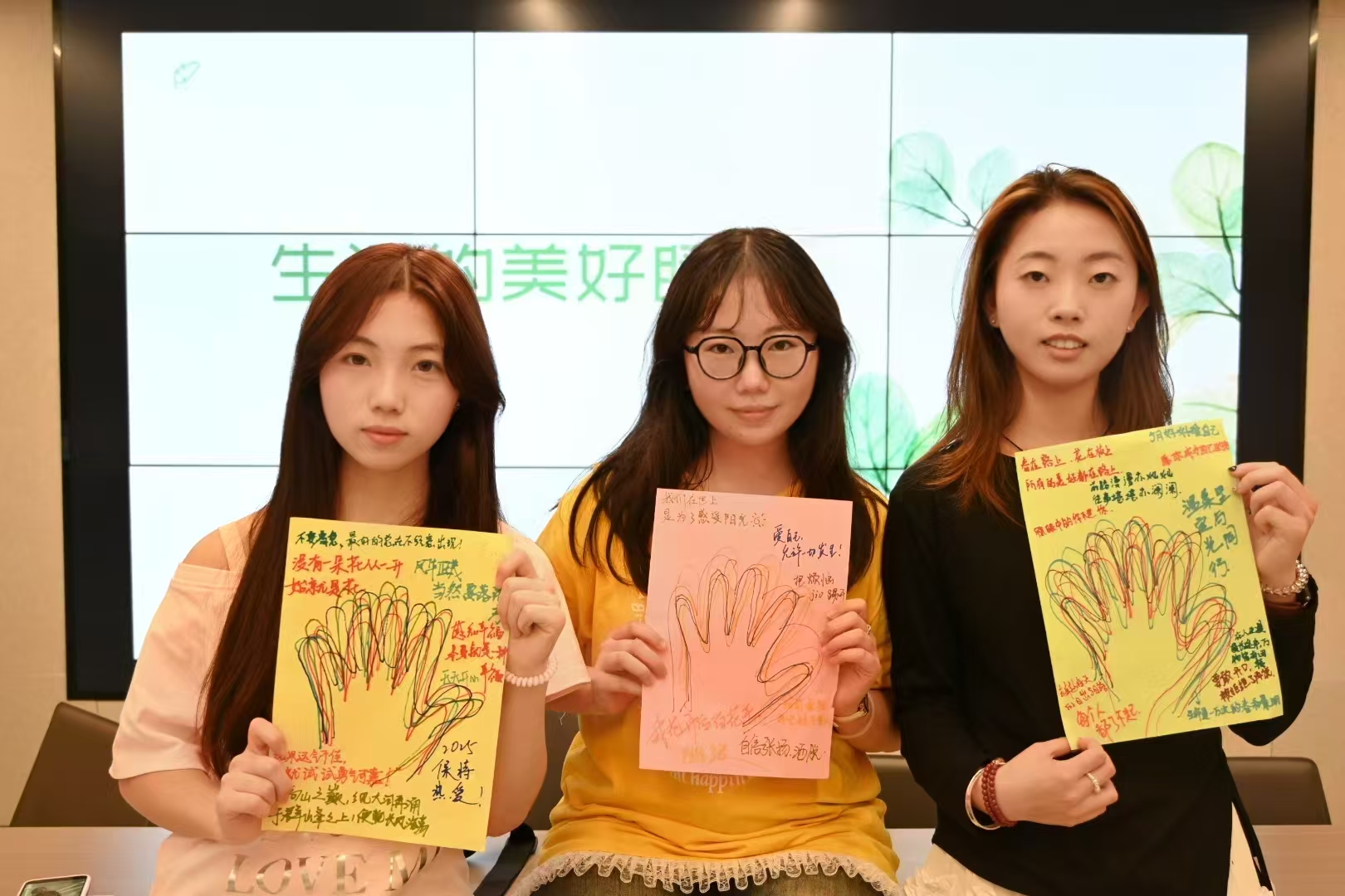 讲座中,主讲人以“记录生活,发现美好——让每一天都值得被记住”为主题,围绕“好好爱自己”这一核心,深入浅出地阐释记录生活对自我关爱的重要意义,引导学生们用心感知日常点滴,挖掘生活里的美好瞬间。在别出心裁的互动环节,主讲人让同学们分组合作,在纸上绘制手掌图案,以此完成击掌仪式,掌心图案旁精心书写着“爱自己,允许一切发生”“每个人都了不起”等暖心力语,与手绘掌印形成巧妙呼应。这些充满力量的文字,让学生们在创作与交流间,进一步加深对爱自己、爱生活的理解。