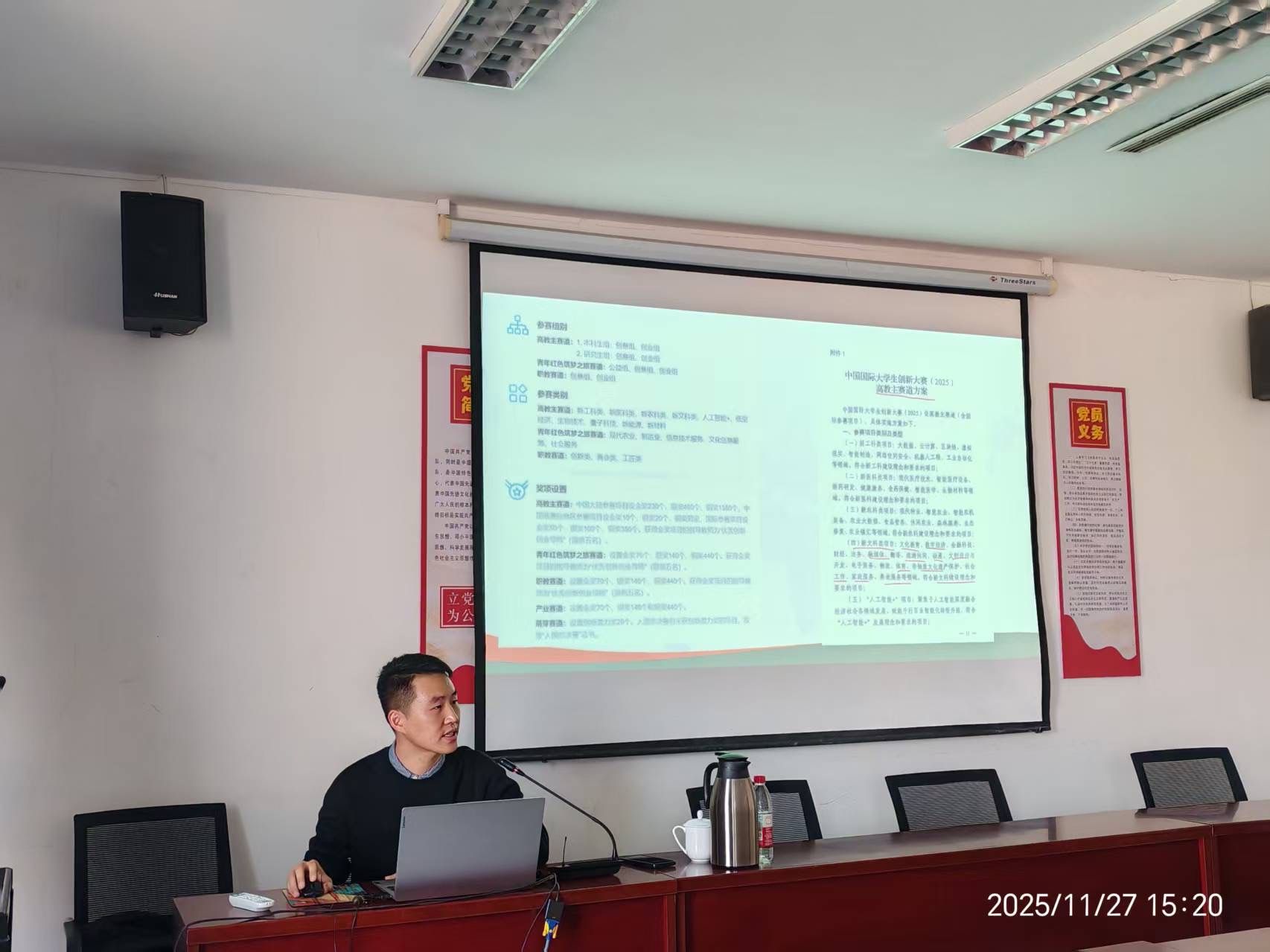 11月27日下午,洛阳师范学院音乐学院特邀新闻与传播学院付帅老师在A420开展中国国际大学生创新大赛项目培训与备赛攻略专题讲座。学院部分教师及本、硕研究生齐聚现场,共同探寻学科交叉背景下的创新参赛路径。