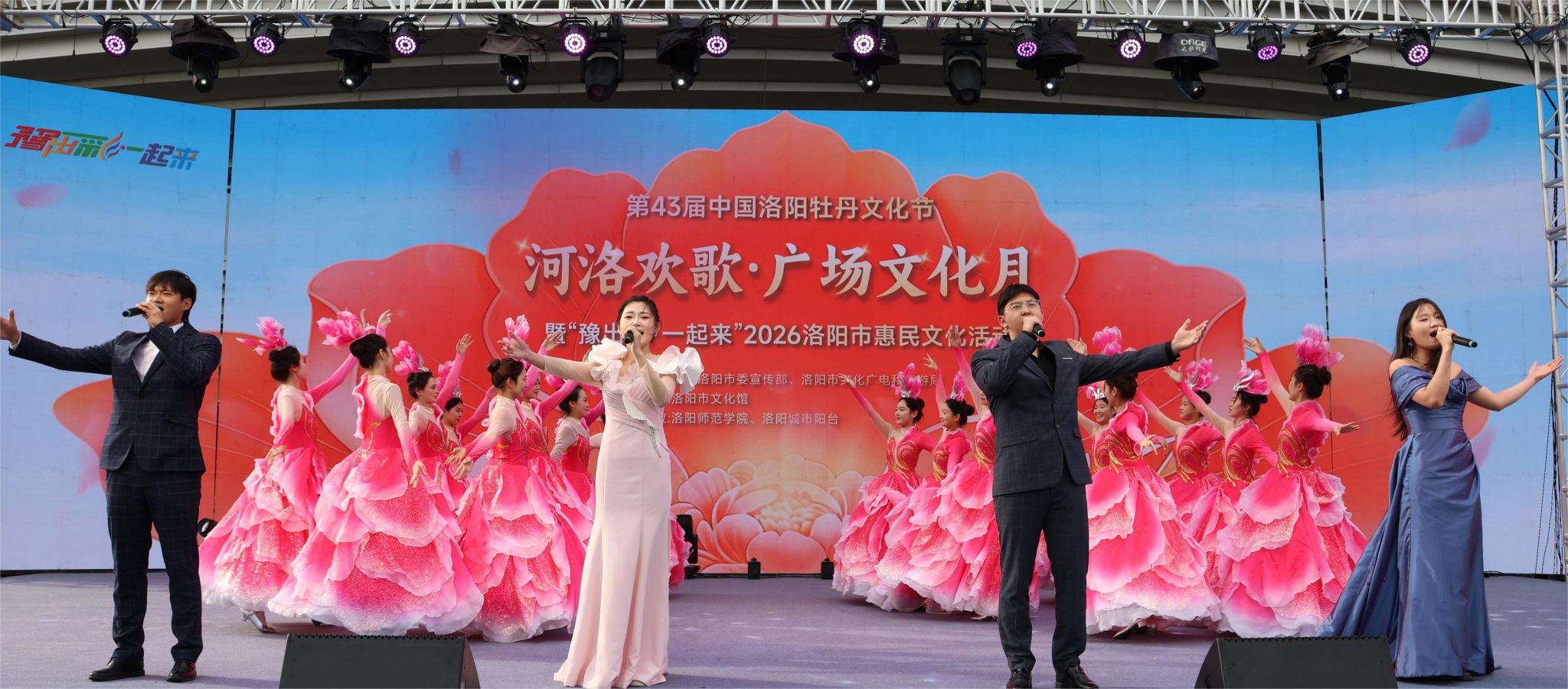 春风拂面花自开,河洛大地歌飞扬。4月22日下午4时,第43届中国洛阳牡丹文化节重点群众文化活动——“河洛欢歌·广场文化月”暨“豫出彩·一起来”洛阳师范学院专场在洛阳城市阳台绚丽启幕。我院学生登台献艺,以青春之姿演绎艺术之美,为市民游客奉上一场兼具地域特色与时代气息的文化盛宴,赢得现场阵阵喝彩。