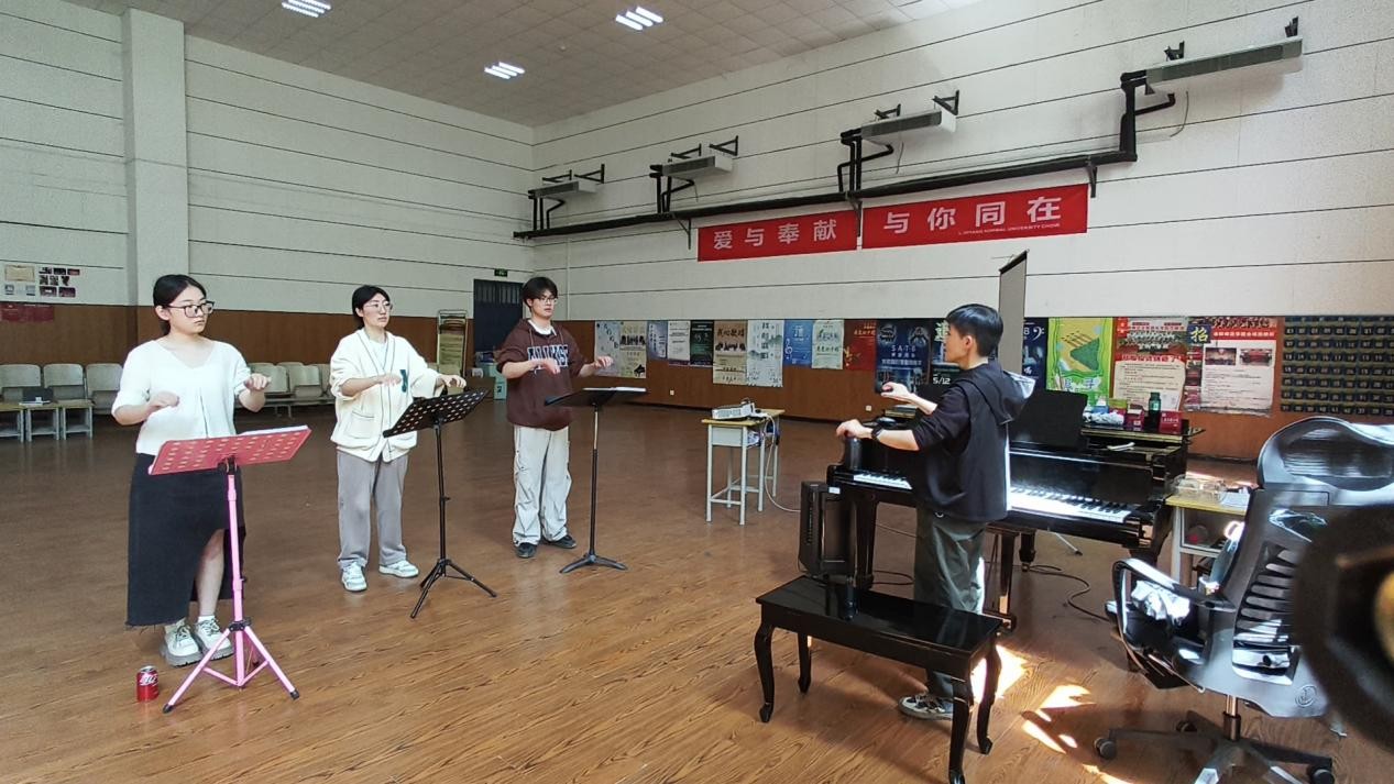 学院自2024年12月开始筹备此次比赛,从选拔选手到安排指导教师、安排训练时间与地点,无不精心设计。本次比赛共设微课、自弹自唱、合唱指挥、自选才艺四个项目。我院22级音乐学专业三位学生:二班杨宇、四班全营、四班裴世阳代表学院参赛。三位同学在赛前认真备赛,反复打磨作品,展现出较高的专业素养和学习热情。其中,微课项目需提前录制并于3月10日前上传至系统。自开学以来,三位参赛同学分别准备了15分钟的教学展示课程:杨宇讲授《阳关三叠》,全营讲授《瑶族舞曲》,裴世阳讲授《生活中的音乐》,在单晓杰老师的悉心指导下完成录制工作。磨课过程中,常丽梅副院长、翟敏老师、包婷老师、李韵老师、李佳琦老师多次听课并提出中肯建议,为微课的顺利完成提供了坚实保障。最终录课工作于3月7日在洛阳集贤学校顺利完成。