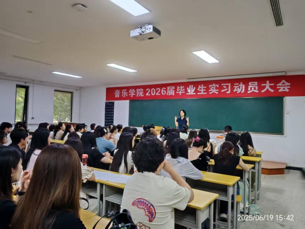 为切实推进音乐教育专业学生的实习工作,提高学生对实习重要性的认识,6月19日,音乐学院在A101召开音乐教育专业实习动员会。学院主管领导、实习指导教师以及全体2026届音乐学专业实习学生参加了此次会议。