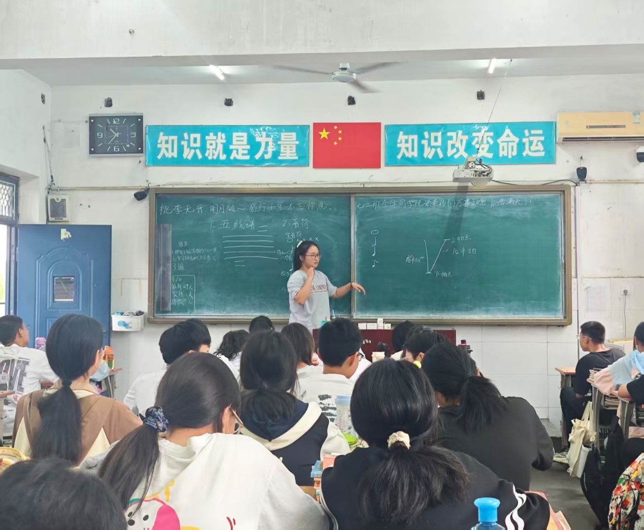 李郝、骆紫腾、裴世阳三位实习老师认真备课、精心施教,并在课外辅导学生备战“庆十一”文艺比赛,展现了高度的职业责任感。同时,三位老师积极参与合唱团训练,帮助提升合唱团整体水平,并在班级管理中与学生建立了亲切的关系,成为学生们信赖的“大哥哥”“大姐姐”。