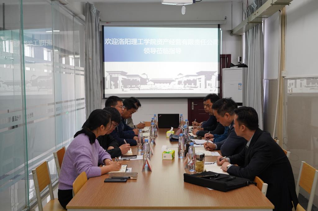 4月9日上午,洛阳理工学院资产经营有限责任公司党总支书记李和平、总经理雷海栋一行5人来我校调研交流。资产经营公司董事长史恒涛、总经理乔景润及公司相关人员参加了会议。