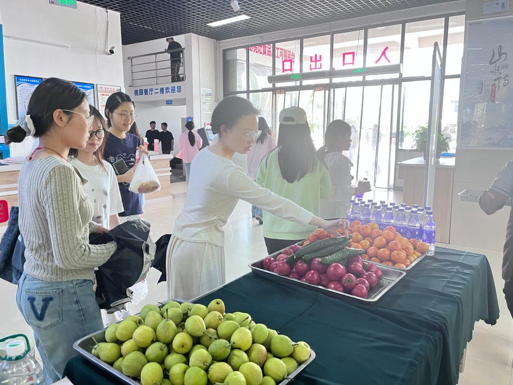 运动会期间四个餐厅投放黄瓜、番茄、香梨、沃柑、香蕉等蔬果共计约1.5万斤,饮品3000余瓶。
