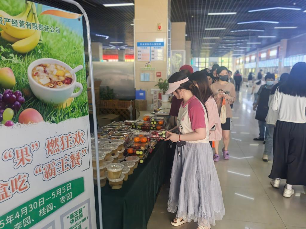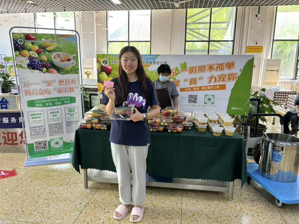 在“五一”国际劳动节到来之际,洛阳师范学院资产经营有限公司精心策划并开展了一场别开生面的“五・一‘果’燃狂欢,拆盲盒吃‘霸王餐’”主题活动。此次活动在桃园、李园、桂园、枣园四个餐厅同步开启,时间从2025年4月30日持续至5月5日,为师生们的假期增添了不少乐趣与惊喜。