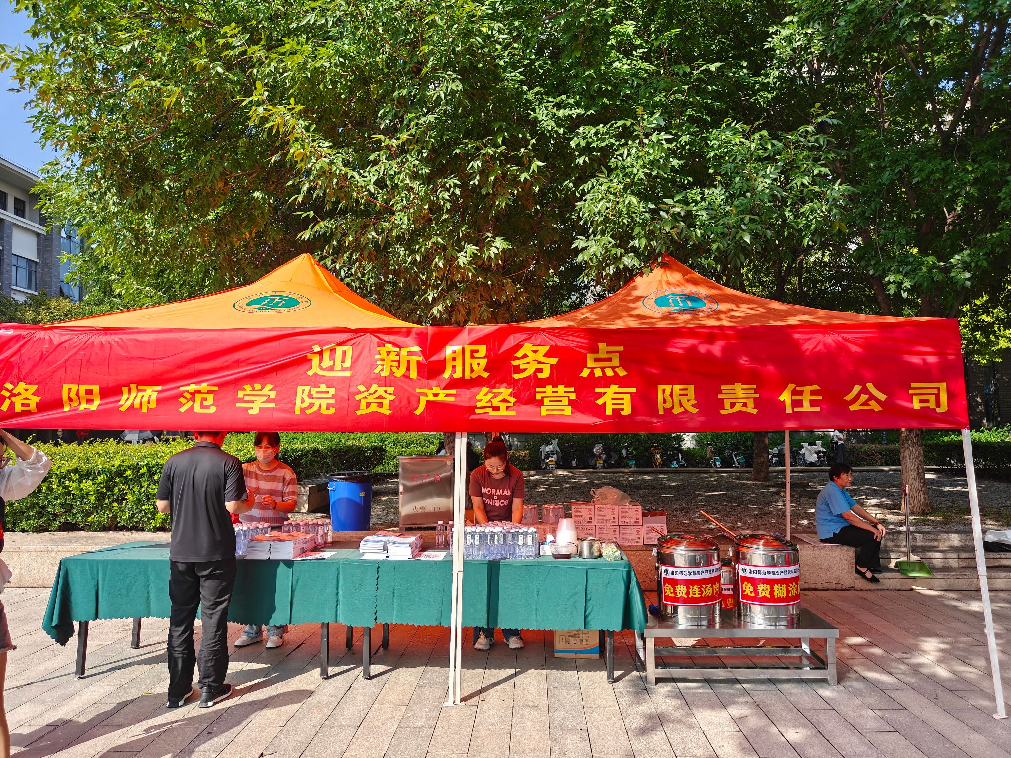 悦迎新生,商户联袂送清凉。为帮助新生快速适应校园,公司提前备足各类生活与学习用品,在校内设立一站式生活用品服务点,保障物资充足、价格稳定。迎新期间,公司联合街区商户推出“青春燃洛城、梦想跃洛师、活力启新程”主题活动,免费提供饮用水、服务手册、军训帽檐吸汗贴、冰镇酸梅汤、养生花茶、手机贴膜和眼镜清洗液等,以多元贴心服务传递校园温情。