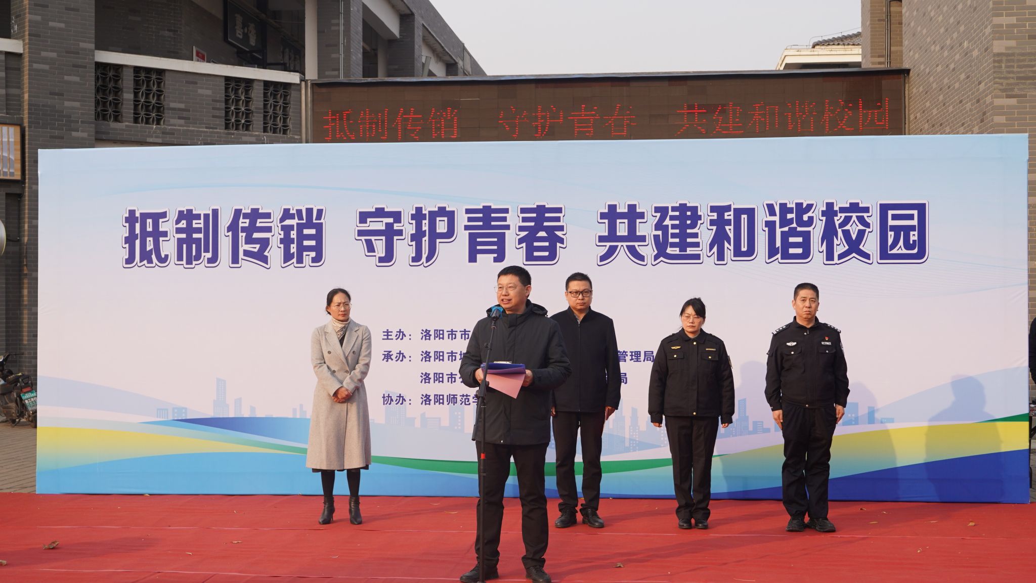 为进一步提高广大师生防范传销能力,共同营造安全纯净的校园环境,12月11日下午,“抵制传销,守护青春,共建和谐校园”主题宣传活动在洛阳师范学院桃园生活服务广场举办。洛阳市市场监督管理局、城乡一体化示范区市场监督管理局、公安分局、学校相关部门负责人及300余名师生代表参加活动。