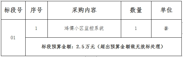 项目名称:洛阳师范学院资产经营有限责任公司物业服务中心鸿儒小区监控设备采购项目