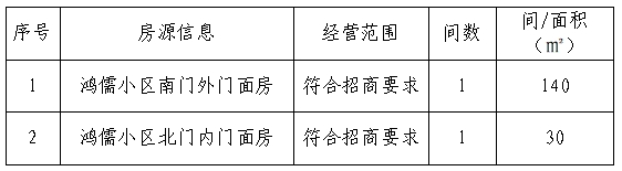 洛阳师范学院资产经营有限责任公司就鸿儒小区南门外及北门内门面房经营性用房进行招租,诚邀市内有良好商业信誉的申请人参加招租。